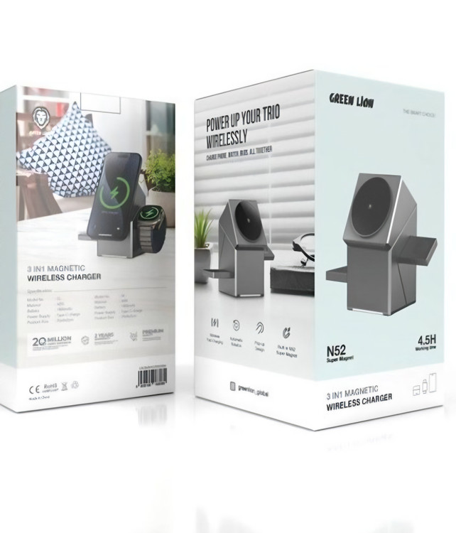 ویژگی های محصول شارژر بیسیم ۳ کاره گرین لاین Power Trio 3 In 1 Wireless Charger :