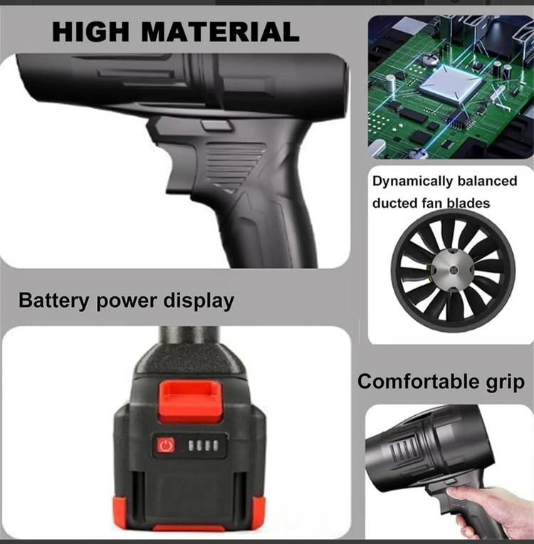 این دمنده دارای موتوری با قدرت بالا است که به شما امکان میدهد آب را به سرعت از روی بدنه خودرو و سطوح دیگر خشک کنید.