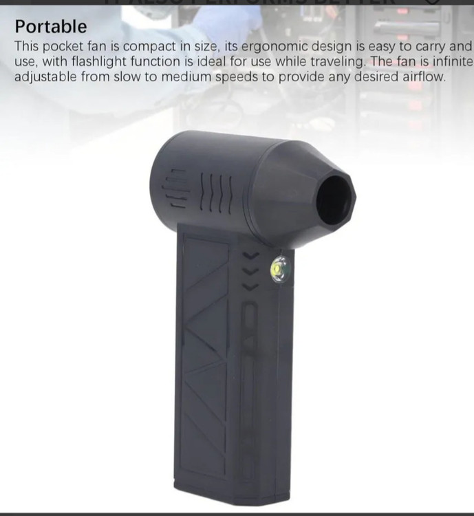 مینی جت دمنده شارژی چراغ دار مدل ZY7400 برای افرادی که به دنبال یک فن قوی و قابل حمل هستند انتخاب مناسب است. این فن دارای سه حالت سرعت است که به شما این امکان را میدهد تا با توجه به نیاز خود از آن استفاده کنید. سرعت موتور 130 هزار دور در دقیقه است و هوای خنک را به سرعت و به طور مؤثر ایجاد میکند. این مینی فن سبک وزن است و حمل و نگهداری آن آسان است. شما می توانید آن را هر جا که می روید، چه برای نظافت بیرونی و چه برای سفرهای کمپینگ، با خود ببرید که میتوانید از آن برای تمیز کردن ماشین، کامپیوتر، صفحه کلید، درست کردن آتش و …. استفاده کنید.