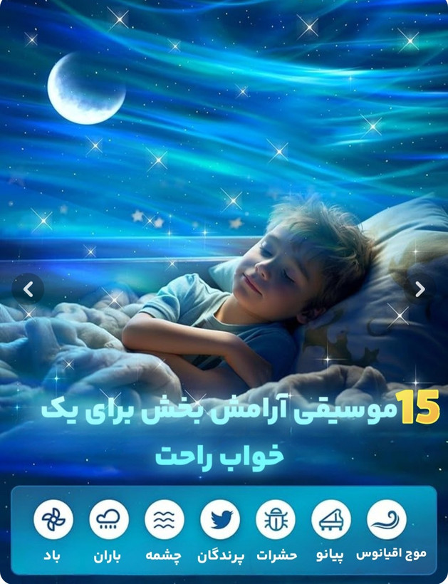 🌌نور پردازی ۱۶ حالت نور مختلف و افکت های حرکتی که اتاق رو به کهکشان تبدیل میکنه . تایمر خواب هوشمند : تایمر رو بزار روی ۱،۲،۴ ساعت خودش خاموش میشه . ۸ نوع صدای طبیعت برای خواب عمیق تر .... 💯